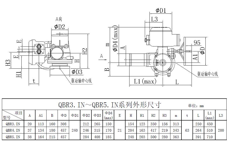 QBR3~QBR5是我公司研制的部分回轉(zhuǎn)閥門電動(dòng)裝置,控制轉(zhuǎn)矩范圍:900N.m~12000N.m。該電動(dòng)裝置可與球閥﹑蝶閥等閥瓣做90°回轉(zhuǎn)的閥門組合成電動(dòng)閥門,其功能是控制閥門的啟閉。該電動(dòng)裝置能夠進(jìn)行單機(jī)或多機(jī)室內(nèi)控制遠(yuǎn)距離控制電動(dòng)操作和現(xiàn)場(chǎng)手動(dòng)或電動(dòng)操作,可廣泛地應(yīng)用在具有管道閥門的工業(yè)系統(tǒng)。該產(chǎn)品的防護(hù)等級(jí)為IP67,隔爆型產(chǎn)品(型號(hào)中有Ex)的隔爆等級(jí) 為dⅡBT4。